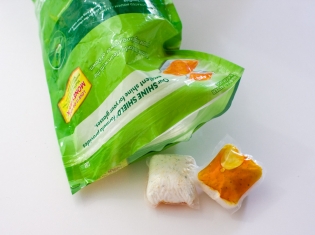 Liquid detergent capsules are dishwasher or laundry detergent liquid encased in a thin plastic that dissolves in water.