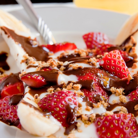 If your child prefers frozen yogurt to pudding, this is the snack for him or her! Top a banana with low-fat strawberry and vanilla frozen yogurt, then sprinkle your favorite whole grain cereal on top for crunch. This snack is perfect for when hunger strikes, without all the unnecessary calories.